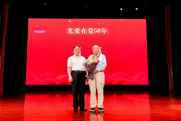 大會隆重舉行了“光榮在黨50年”紀念章頒發(fā)儀式,集團黨委書記、董事長卜玉龍為集團老領(lǐng)導(dǎo)、老黨員石磊頒發(fā)并佩戴紀念章,向他致以崇高的敬意,感謝他為中智集團作出的積極貢獻。