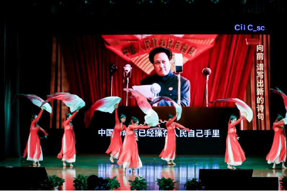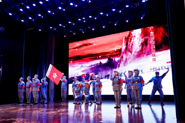 表彰中間,來自集團各條戰(zhàn)線的員工穿插表演了《長征組歌》《英雄贊歌》《不忘初心 向黨表白》《燈火里的中國》《華夏》《黨建rap》等反映中國共產(chǎn)黨革命、建設(shè)、改革和進入新時代各個時期歷史及黨的十八大以來,在以習(xí)近平同志為核心的黨中央堅強領(lǐng)導(dǎo)下,集團改革發(fā)展和黨建工作取得新成效的精彩節(jié)目,集體合唱《歌唱祖國》把大會推向高潮。